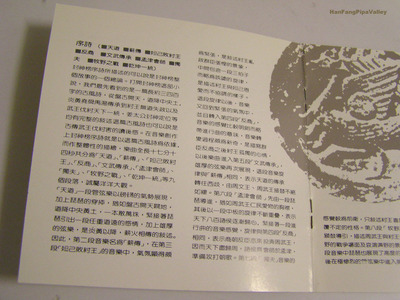 Pipa Concerto “The Legend and The Hero" ——Some Pics for Luteboi/琵琶協奏曲《封神榜》內頁剪影——給Luteboi參考 琵琶協奏曲《封神榜》內頁剪影—給Luteboi參考 這《封神榜》專輯在香港很難找到了,你想看看封面內頁,拍了幾張照片給你參考一下。內頁有〈前言〉、〈陳雲山簡介〉、〈王世榮簡介〉,然後就是樂曲說明,封底內頁有製作者和樂手名單。 第一輯剪影 分享此文: 按一下即可分享至 X(在新視窗中開啟) X 按一下以分享至 Facebook(在新視窗中開啟) Facebook 喜歡 正在載入... 相關
