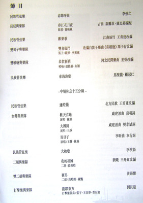 很久沒去音樂會了,昨晚在沙田大會堂欣賞了上海民族樂團的「歡樂祥和中國年」音樂會。樂團總監兼指揮王甫建說這是上海帶給香港市民的新年祝賀,節目以歡樂祥和為主題,整體氣氛熱鬧歡快,相當成功。再奏部分最後一曲《花好月圓》,王甫建「指揮」觀眾用不同力度拍掌配合樂曲演奏,台上台下打成一片,效果很好。