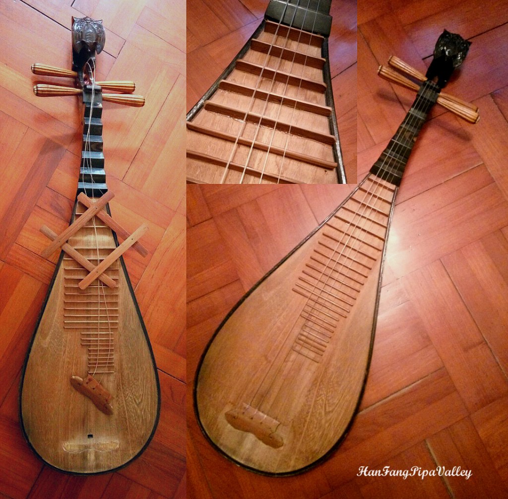 我雖只學了兩年,但已擁有三個琵琶,第一個就是入門的敦煌597白木琵琶,學了一段時間後就想升級買更好背板材料的琵琶以追求音色,好材料的琵琶價格不菲,便在二手網先後購得河北的皮灰黑檀琵琶和黑牛角軸相的敦煌琵琶(背板材料不詳),人家說北方琵琶宜武曲、南方琵琶宜文曲嘛!說來第二個敦煌琵琶到手後竟發現多處打品(煞弦),也就跟你不謀而合,用膠片墊高相應的品,最終解決了問題。