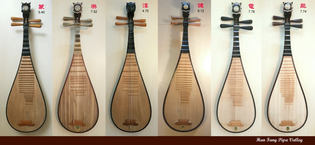 The six pipas of Han Fang / 寒方六琶 《琵琶六記》寫畢,現按六琶與寒方結緣順序並附命名及重量(市斤)併照一張以作結。六琵最輕為《淳》(4.7市斤),最重為《電》(7.78市斤),《能》僅次之(7.74市斤)。鐵梨木質重,果名不虚傳也。 分享此文: 按一下即可分享至 X(在新視窗中開啟) X 按一下以分享至 Facebook(在新視窗中開啟) Facebook 喜歡 正在載入... 相關