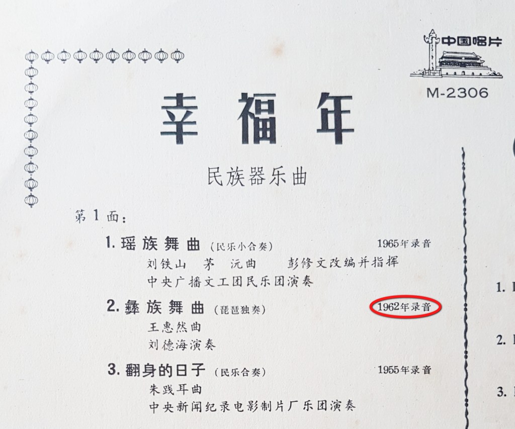 如中唱所標明的錄音年份無誤,則可知《彝族舞曲》不可能作於1965年矣!