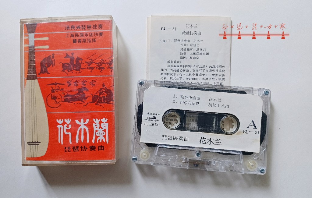 這盒1983年出版的《花木蘭》琵琶協奏曲,由湯良興琵琶獨奏,上海民族樂團協奏,瞿春泉指揮。當年買回來想必是聽完了一次就帶也不回的收起來,磁帶就停在協奏曲曲終位置,一放就幾十年。現在打開一看,嚇了一跳,可算是我藏品中發霉較嚴重的一盒!
