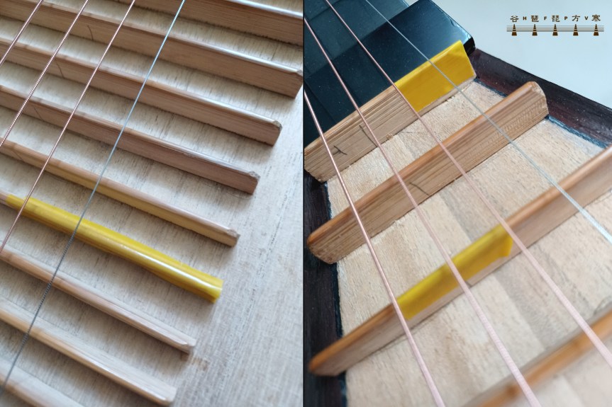 彈奏此曲時,有好幾處品位出現煞弦音,只好臨時在品面貼上膠貼方才能彈畢樂曲。但普通膠貼不耐磨,有膠貼之處要做吟揉推挽音都不便,只能將就著彈。如能找到一種表面硬而滑又夠薄的膠貼,就能輕易解決品位煞弦的問題,如果我是廠家,一定會研發這種產品!不知琴友們遇到煞品時是如何處理的呢?