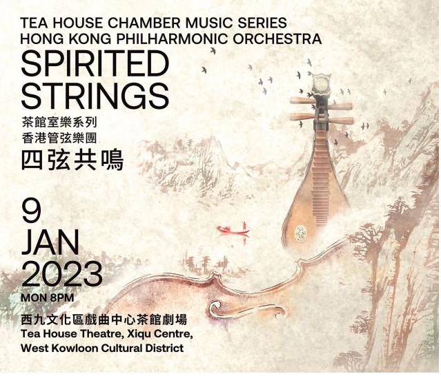 香港管弦樂團宣傳明年一月舉辦的一場音樂會:《四弦共鳴》,由港樂混合小組聯同琵琶演奏家高思嘉等演出。「四弦共鳴」指的大抵是西方弦樂和中國琵琶的共鳴吧(港樂官網的介紹說明是:四根琴弦、一個共鳴箱,在親密空間奏出無限情感)。其宣傳海報是一張彩畫(國畫),早前海報中竟用了一個柳葉琴放在下圖紅圈中「琵琶」位置,反映製作者連琵琶也搞錯,不夠專業,已有人在社交媒體提出意見。(下圖見西九文化區網站,截取日期:30-12-2022。)https://www.westkowloon.hk/en/tea-house-chamber-spirited-strings#overview