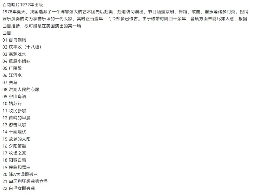 我家中收藏了一盒名為《中華人民共和國藝術團演出實地錄音》的錄音帶, 是「器樂獨奏」的第一輯,其中B面的最後一曲,收錄了劉德海演奏的《游擊隊歌》。這盒錄音帶的出版公司是「百花」,整盒帶只得一張單面印刷的「招紙」(封面、封脊、封底),記載了演奏者、樂曲類別和名稱,但沒有印上明確的出版年份(應是上世紀七十年代),又沒有說明這個「實地錄音」是在何「地」(很有可能是香港)。說明資料殘缺,反映當年出版者並不重視向大眾提供較詳細的相關文獻資料及說明。